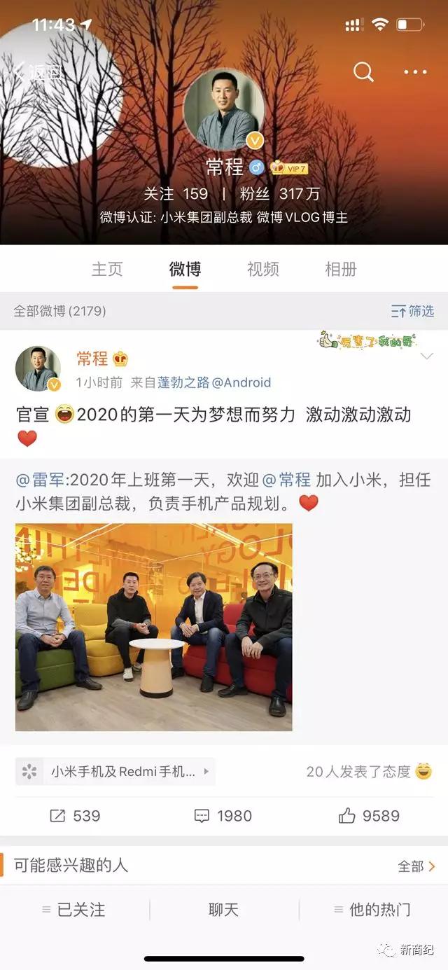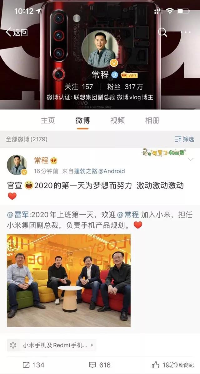 后序,许多人都在讨论为啥常程一辞职就光速加入了友商小米,难道没有竞业协议限制吗?这个知道内情的麻烦留言讨论下。写稿子的时候,查阅了下常程的微博认证,依然是“联想集团副总裁 微博vlog博主”,写完之后,刷新了下,已经变成“小米集团副总裁 微博VLOG博主”。