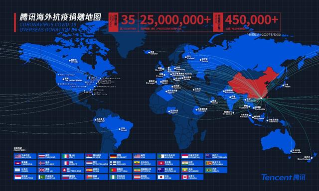 除了与商业伙伴合作抗疫、为多国提供紧急援助外,腾讯更一对一为全球战斗在一线的医疗机构提供了数百万件物资援助。